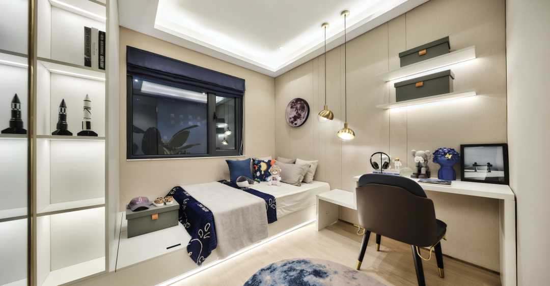 次卧盛装孩子的梦想和老人的守候,三代同堂各得其所,舒适起居悦然于心。生活中的点滴幸福,都于这方寸之间尽情演绎。