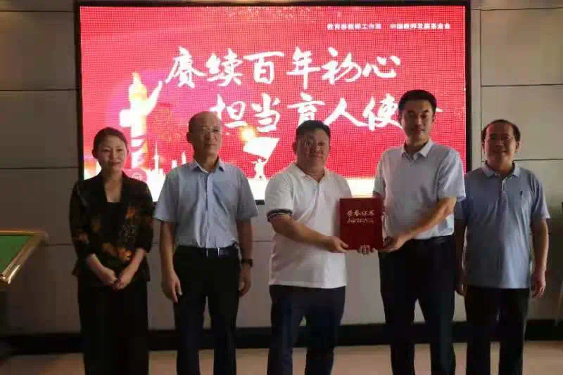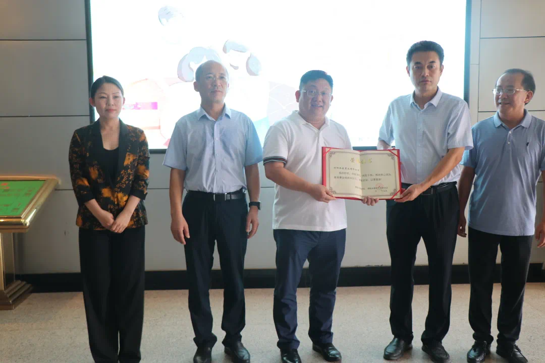 市教育局党组副书记李殿峰为捐资企业颁发捐赠荣誉证书