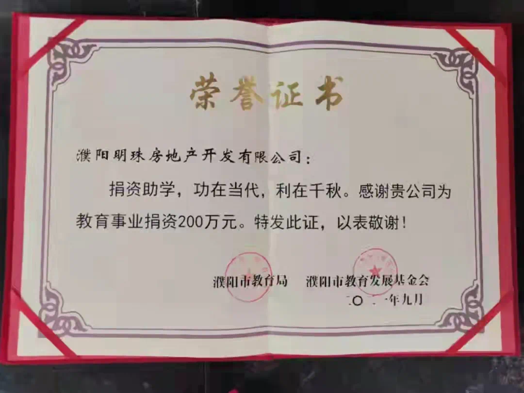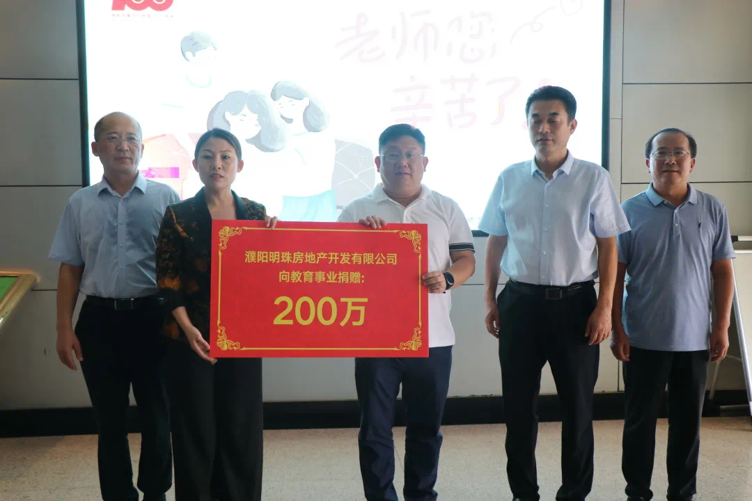 在第37个教师节来临之际,明珠地产为濮阳市教育事业捐赠教育基金200万元。明珠用实际行动践行责任地产,对社区教育给予关心与支持,为我市教育事业发展不断添砖加瓦!