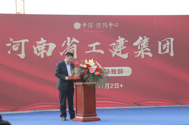 河南省工建集团副总经理梁建明致词。相信中深·濮阳中心一定会保质保量,严把工程质量关,严控施工环节,给我们的业主营造一个高起点、高标准、高质量、高品质的濮阳中心。