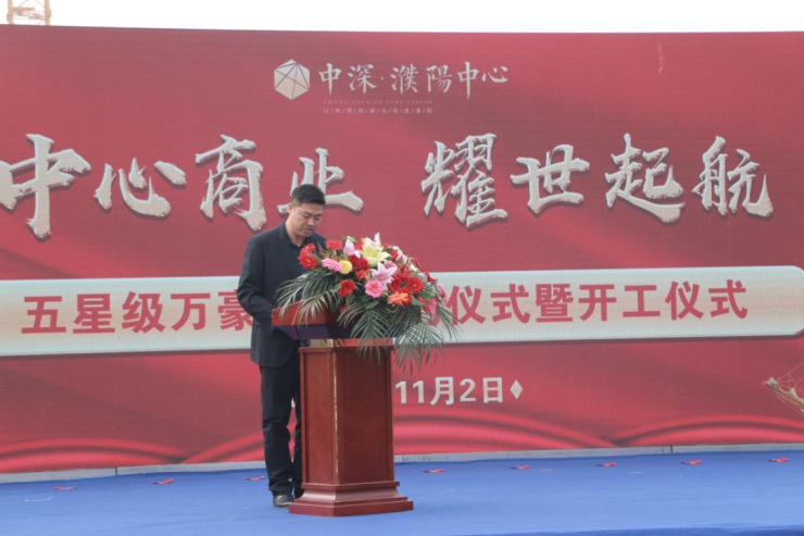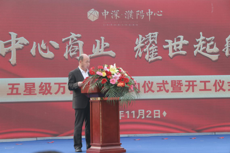 区委常委区委办主任 左留成致辞,叙说了“老商贸 新高度”是濮阳人民的情怀所在,是政府重点关注项目,是濮阳新的城市名片,最后衷心祝愿中深·濮阳中心越来越好,百尺竿头、更进一步!