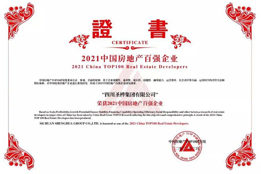 载誉前行丨圣桦集团蝉联中国房地产百强企业