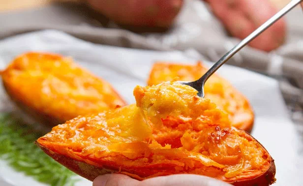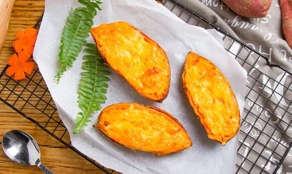 最精彩的是呀,相比蒸或者煮,焗烤的红薯能更优质地析出糖汁,长出一层薄薄的焦糖壳,先咬下一口芝士,香甜浓郁地在舌尖爆浆,再磕开小脆壳,酥中有软,软里回甜。