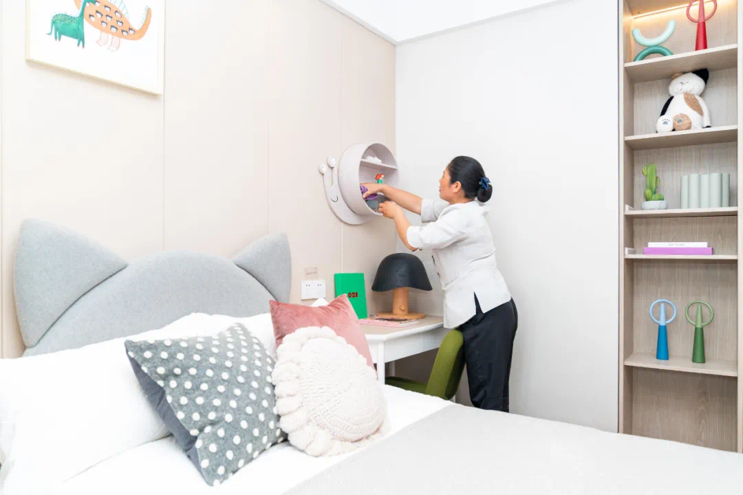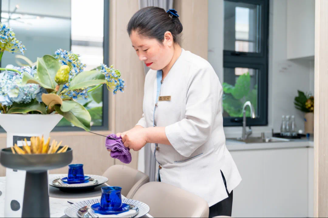 从示范区,到售楼部,再到样板间,保洁大姐的身影忙碌其中,只为给您一尘不染的置业体验。