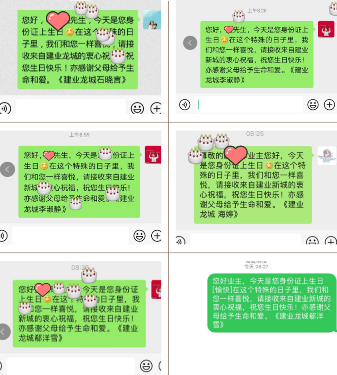 以客户为中心,持续创新,持续引领,初心不改,拉近你我的距离,让幸福不再遥不可及!关注您的每一个重要时刻,在您的生日、在阖家团圆的中秋、在每一个值得铭记的日子,我们共为业主送上7000余次美好祝福。