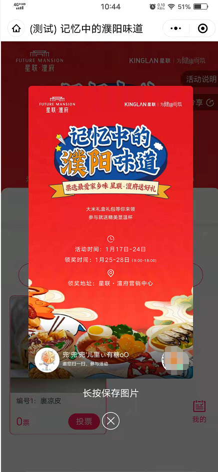 长按识别保存海报→转发朋友圈/微信好友→帮你投票