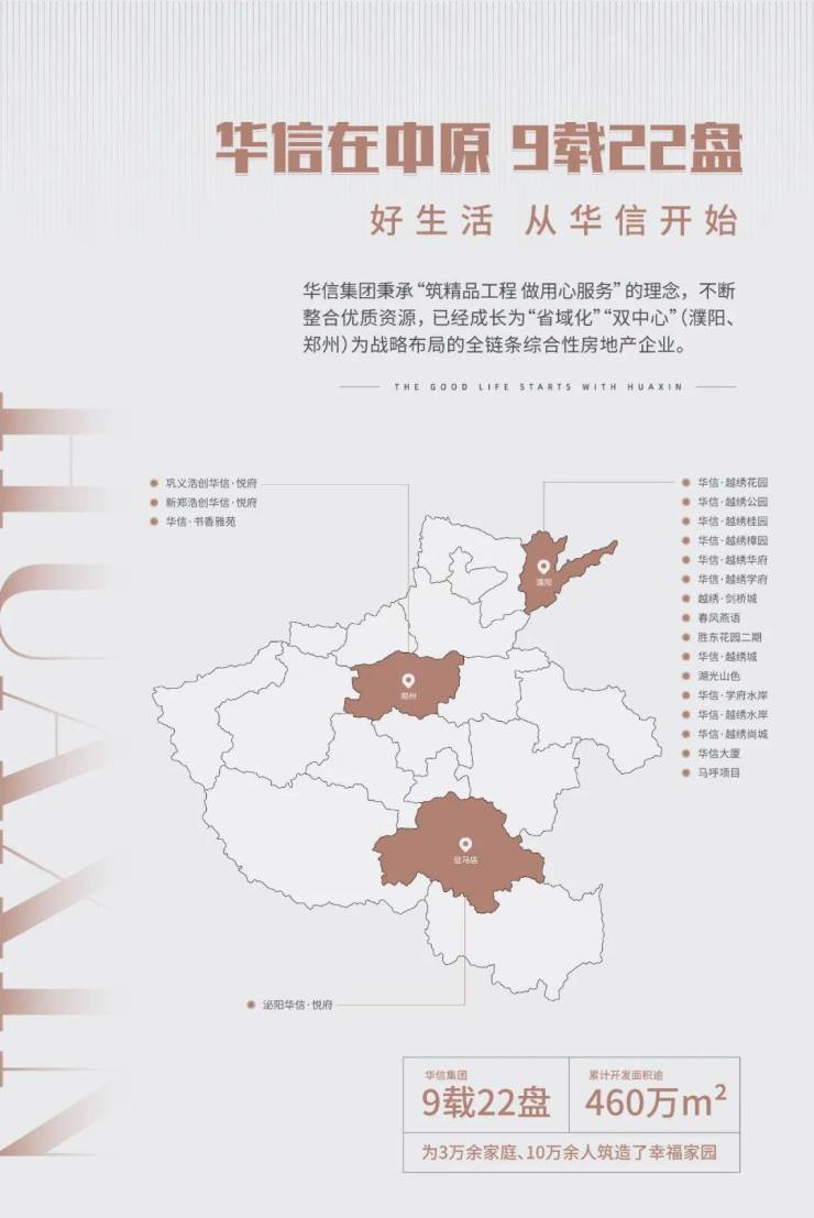 华信有三好,建筑、景观、物业好!多年来华信在建筑、景观、物业方面连续多年获得多项荣誉。2021年度河南二十大品质人居项目(克尔瑞产品力100数据),2022年入围品质作品(克而瑞2022年上半年全国【产品力100】品质作品榜),华信旗下项目多次荣获行业奖项。