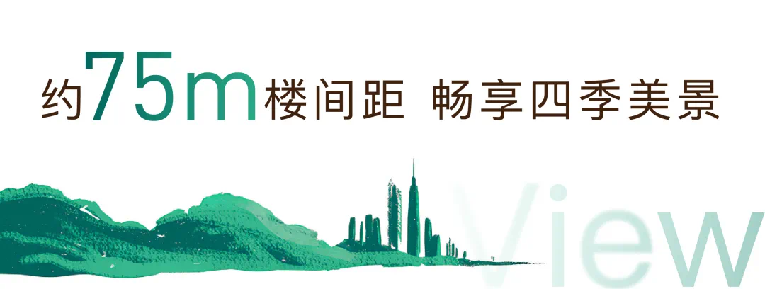 湖光山色较大约75m阔绰楼间距(18#-23#楼间距)辅以错落分布的楼栋格局,重新定义居住尺度,充分保证每栋楼、每一户,都能够享受奢阔的视野和景观资源,重塑人与景的舒适宽度,成就风景人生。