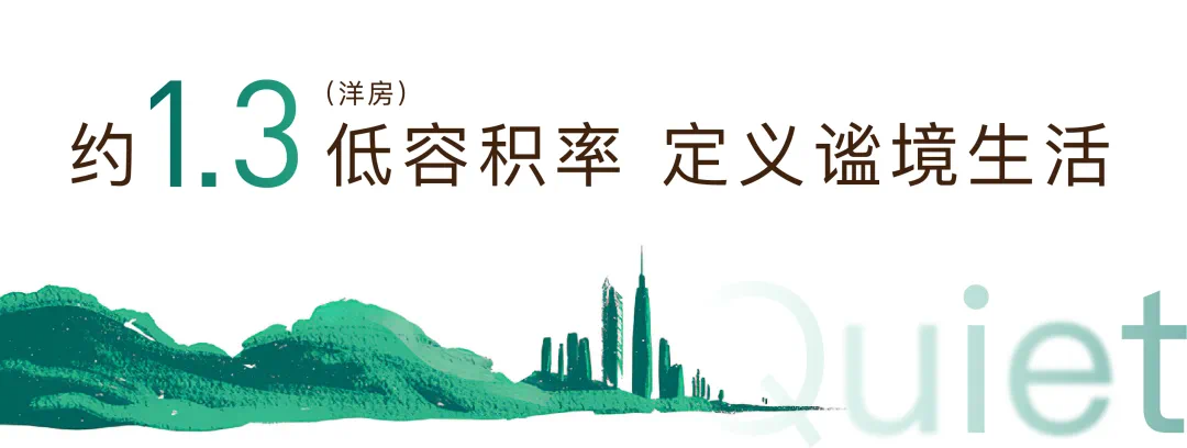 约1.99低密容积率,约40.15%高绿地率,打造低密美好生活场景。洋房区容积率更是低至约1.3,将更多空间赋予生活与美景。