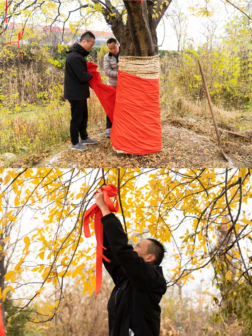 百年朴树经过漫长的历史变迁,是古人们留给我们具有非常高的文化价值和保护价值的自然遗产和文化遗产,因此非凡人就定下这样的传统,运往百花湖的每一棵古树都要在树枝上系上红绸丝带,并在树干上披上红色绸布,表达对古树的珍视和对古人的敬意,它也将带着美好的祝福和祈愿,用枝繁叶茂荫庇百花湖的家人们!