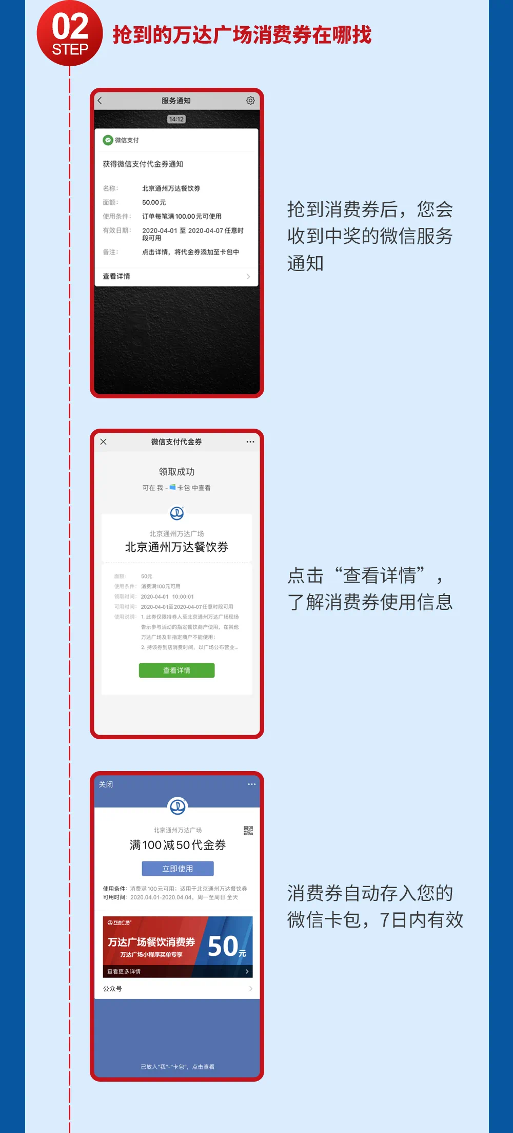 那么,消费者该如何抢消费券呢?消费者每天上午10时起,只要登陆万达广场小程序或者亲临广场参与摇一摇抽奖,就有机会赢取。抢到的消费券将自动进入微信支付卡包,消费者在7个自然日内到万达广场参与活动商家都可以使用,线下支付结算时不仅可以享受商家已有优惠折扣,而且可同时叠加抵用万达广场消费券,通过万达广场小程序买单功能一键抵用,简单便捷易操作。所有抵用的消费券费用全部由万达商管集团承担。