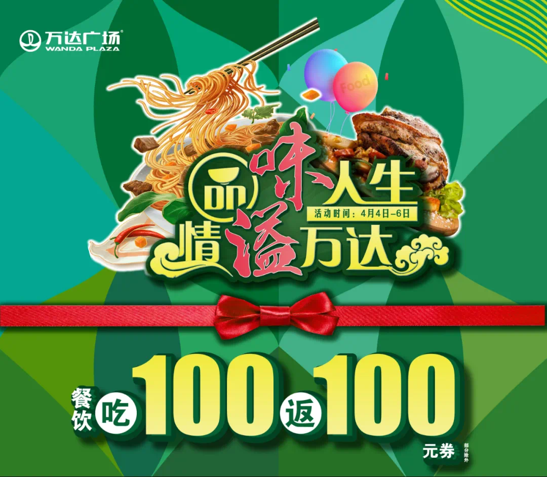 万达广场福利来了!全民消费券大放送+餐饮吃100返100