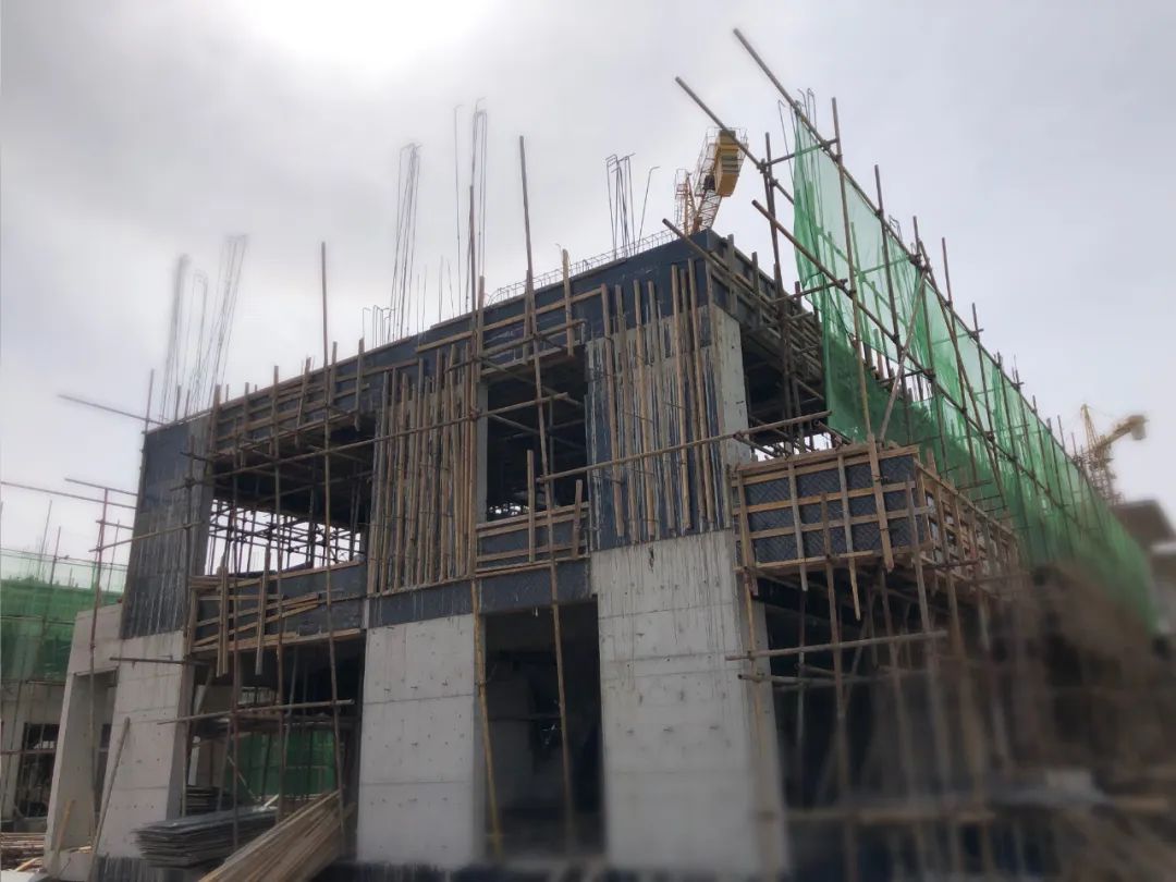 3#别墅邻水而居,进展神速,目前已盖至二层,工程进度达80%,钢筋绑扎正在进行中,仅差一层即可封顶,预售证也将迅速到位!
