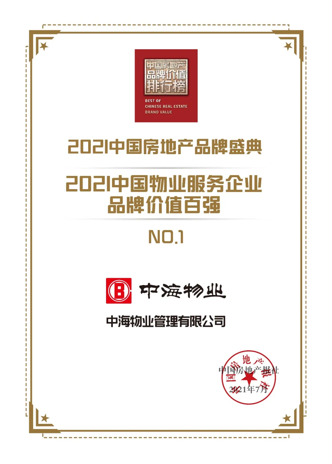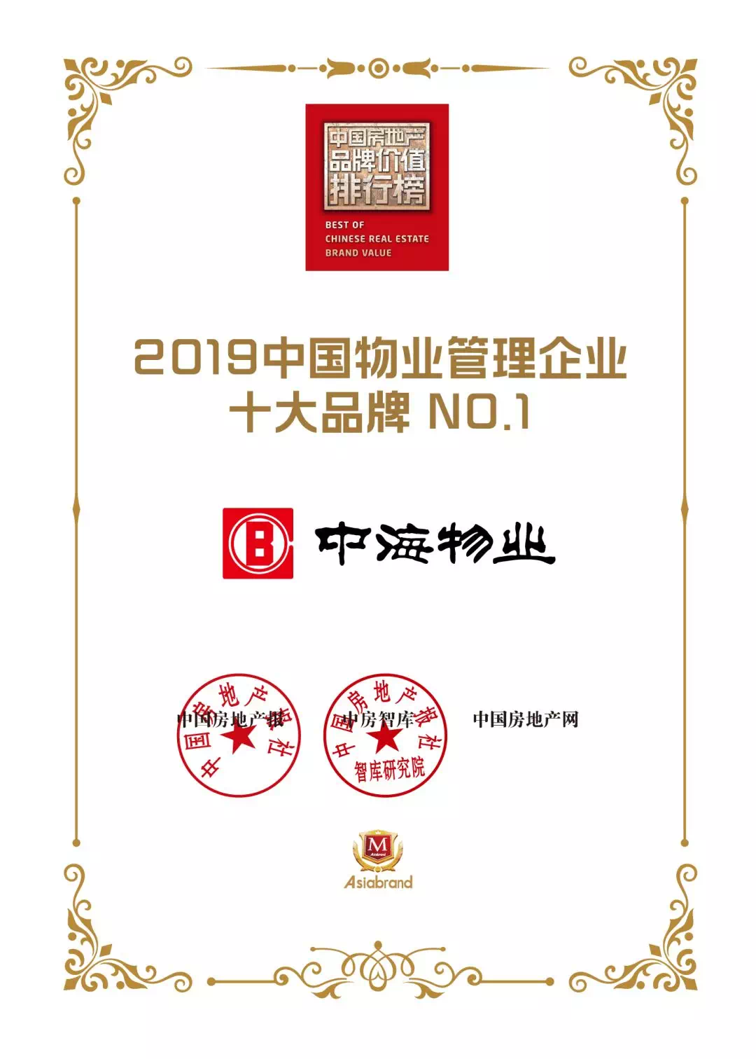 中国物业服务企业品牌价值百强榜NO.1