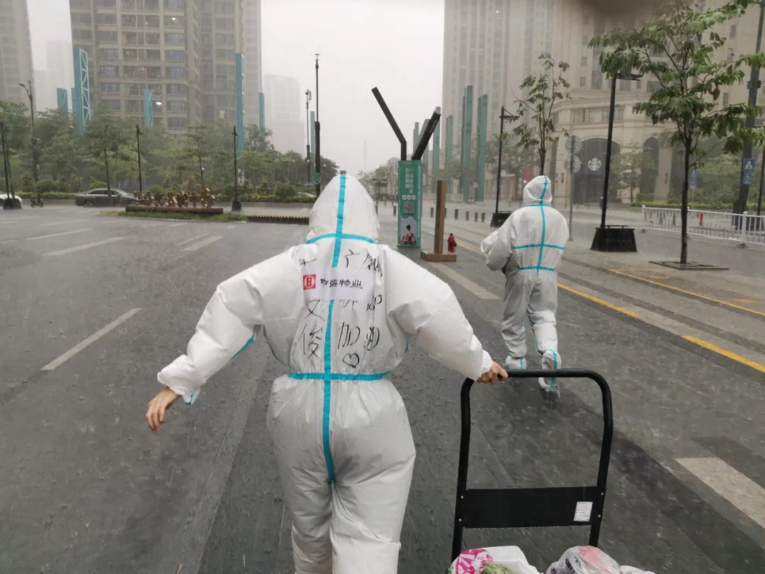 疫情封闭管理期间,物业管家将生活物资送到业户家里