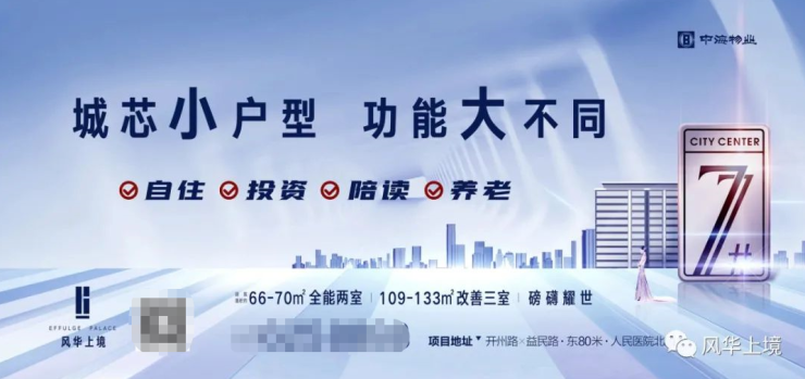 风华上境7#全能户型,适用人群广,市场需求大。既可年轻人自住,老人养老、上学陪读、也可以新型办公或者出租,5大受众群体,满足不同人群的不同需求。