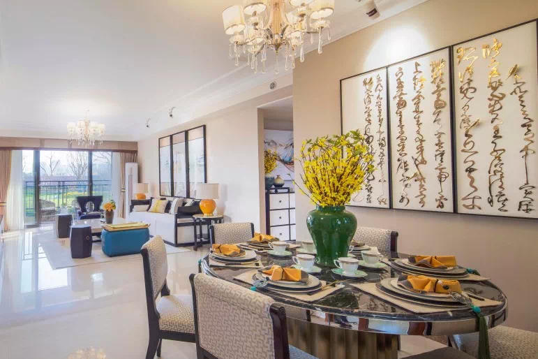餐厅与客厅相连,扩大生活空间,搭配南向阔景阳台,带来大采光面和更好通风,各功能尺度游刃有余,不论是家庭私宴亦或是好友聚会,皆可畅享自在奢阔人生,感知热闹而不拥挤的品质生活。