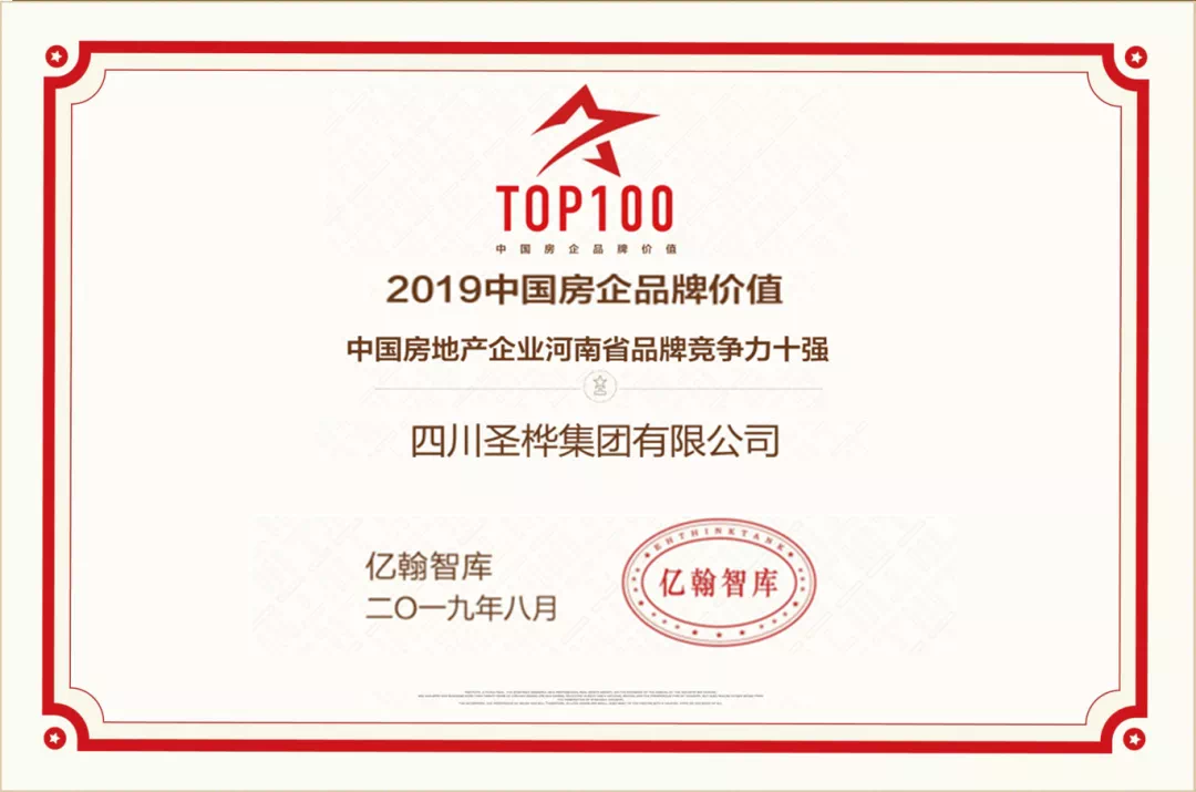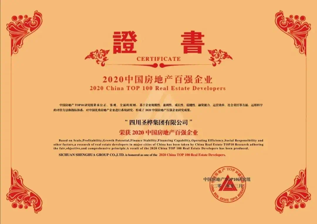 载誉前行丨圣桦集团蝉联中国房地产百强企业