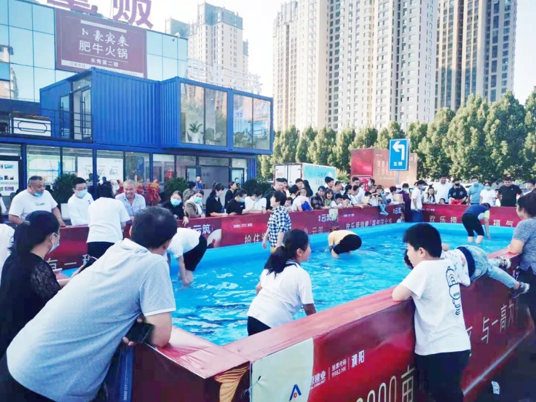 宽敞的充气鱼池里,一大波锦鲤欢快地在水中穿梭
