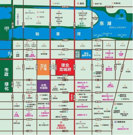 建业龙城府位于濮北新区振兴路与绿城路交会处,沿振兴路往北可以直达龙湖,是濮阳未来重点发展区域,未来的娱乐、行政、商业中心。项目总占地约117亩,总建筑面积约28万方(含地下),包含11栋高层,一所幼儿园。小区采用人车分流设计,让小区内出行更加便捷安全。项目采用围合式布局,将更多空间留给绿化景观,绿化面积近60亩,每栋楼下还规划有不同特色的院落式景观。
