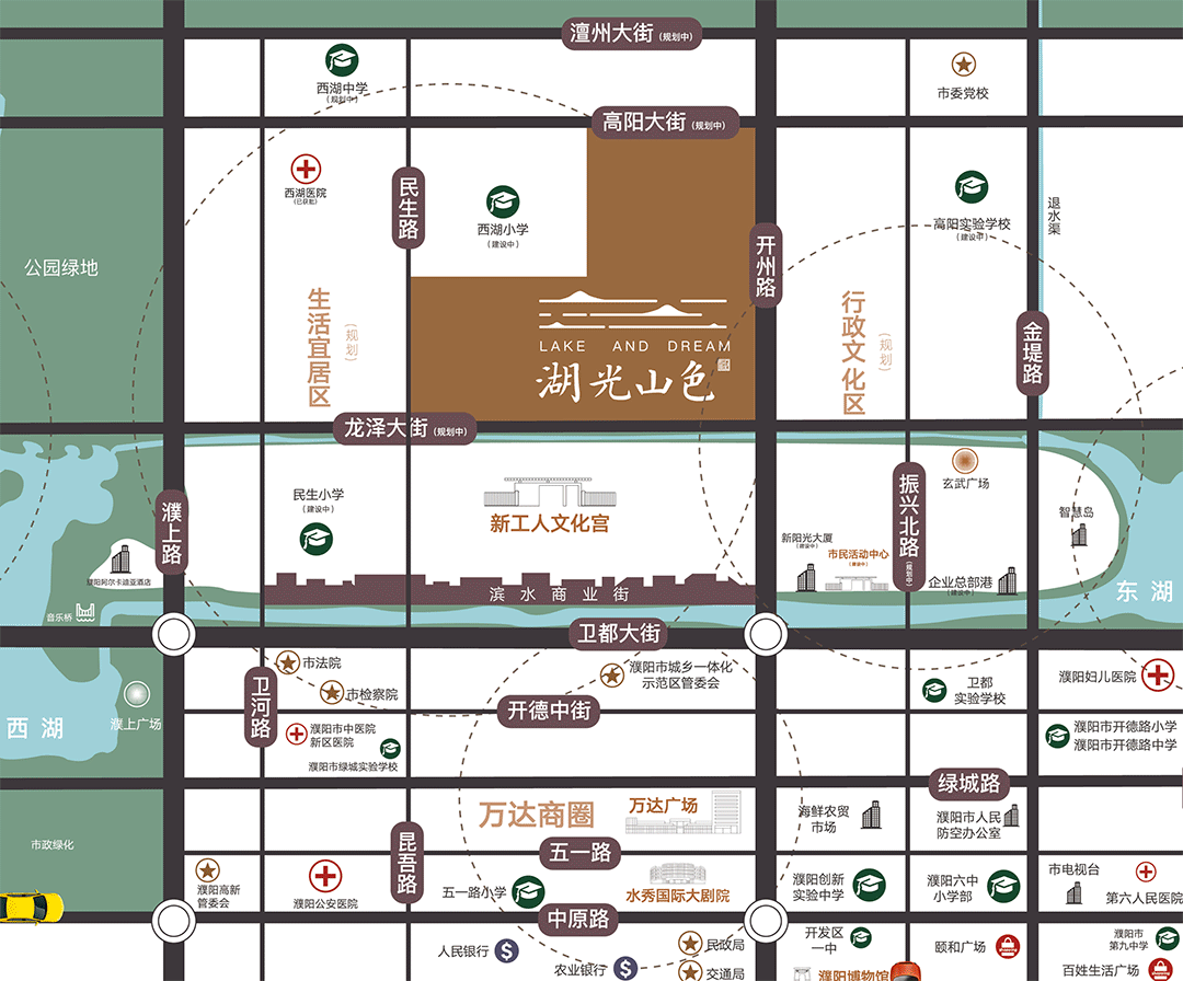 择址濮北新区核芯地段,坐拥约8000亩大美龙湖,咫尺大型滨湖商业(规划)、万达广场等鼎盛配套,一站式教育资源,医疗护航,拥享一城繁华。