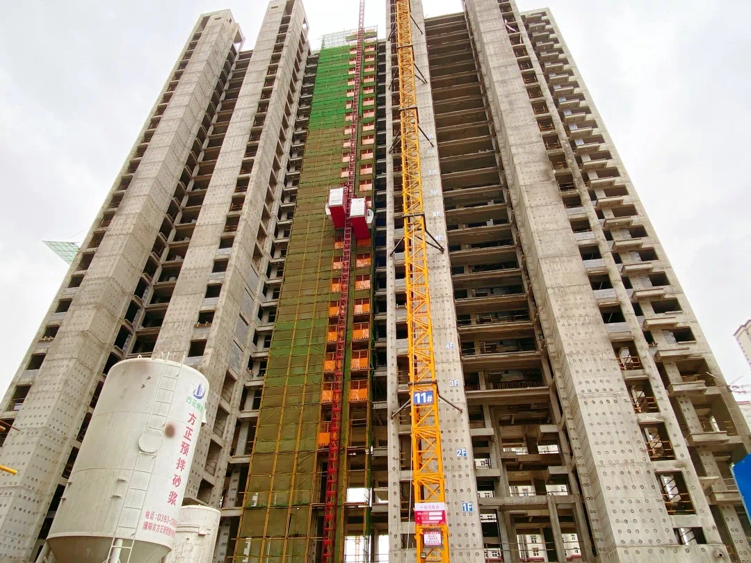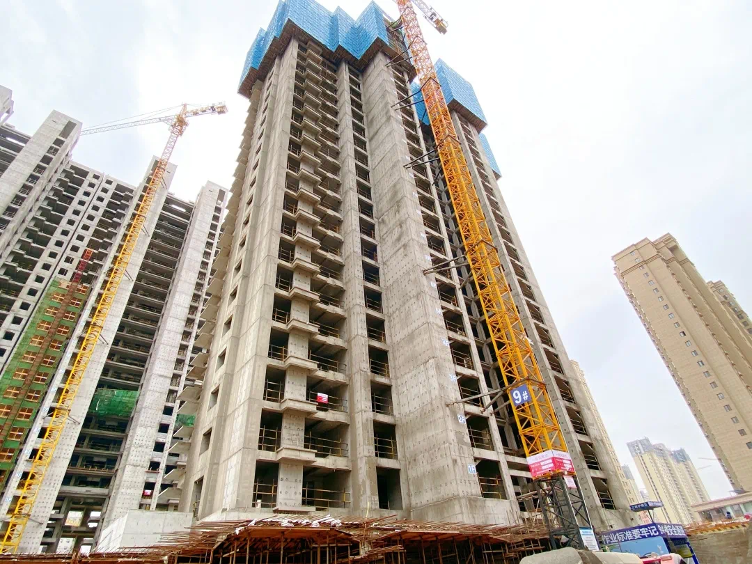 11#主体结构封顶已完成,九至十层填充墙砌筑