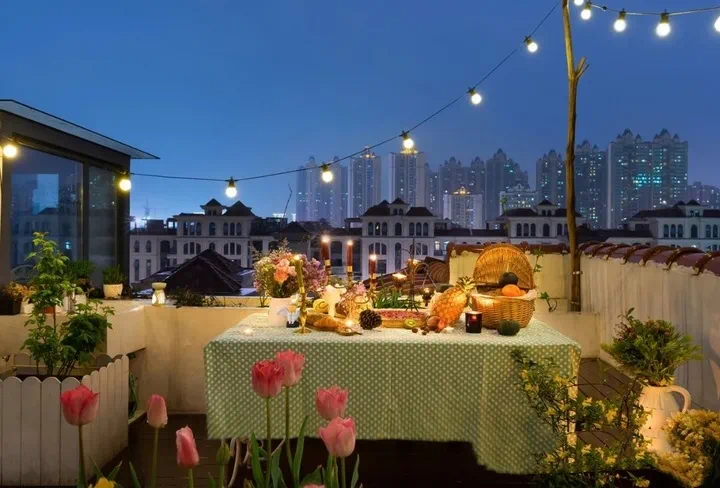落日将天边镀上一层暖色色彩,绚烂的晚霞让院子瞬间浪漫起来。此时最适合一家大小或闺蜜好友,围着露台上的烧烤架,有早上采摘的果蔬,有鸡翅、羊肉的鲜香,家长里短伴着滋滋油响,醇厚美酒配上良辰美景这才是向往的生活。
