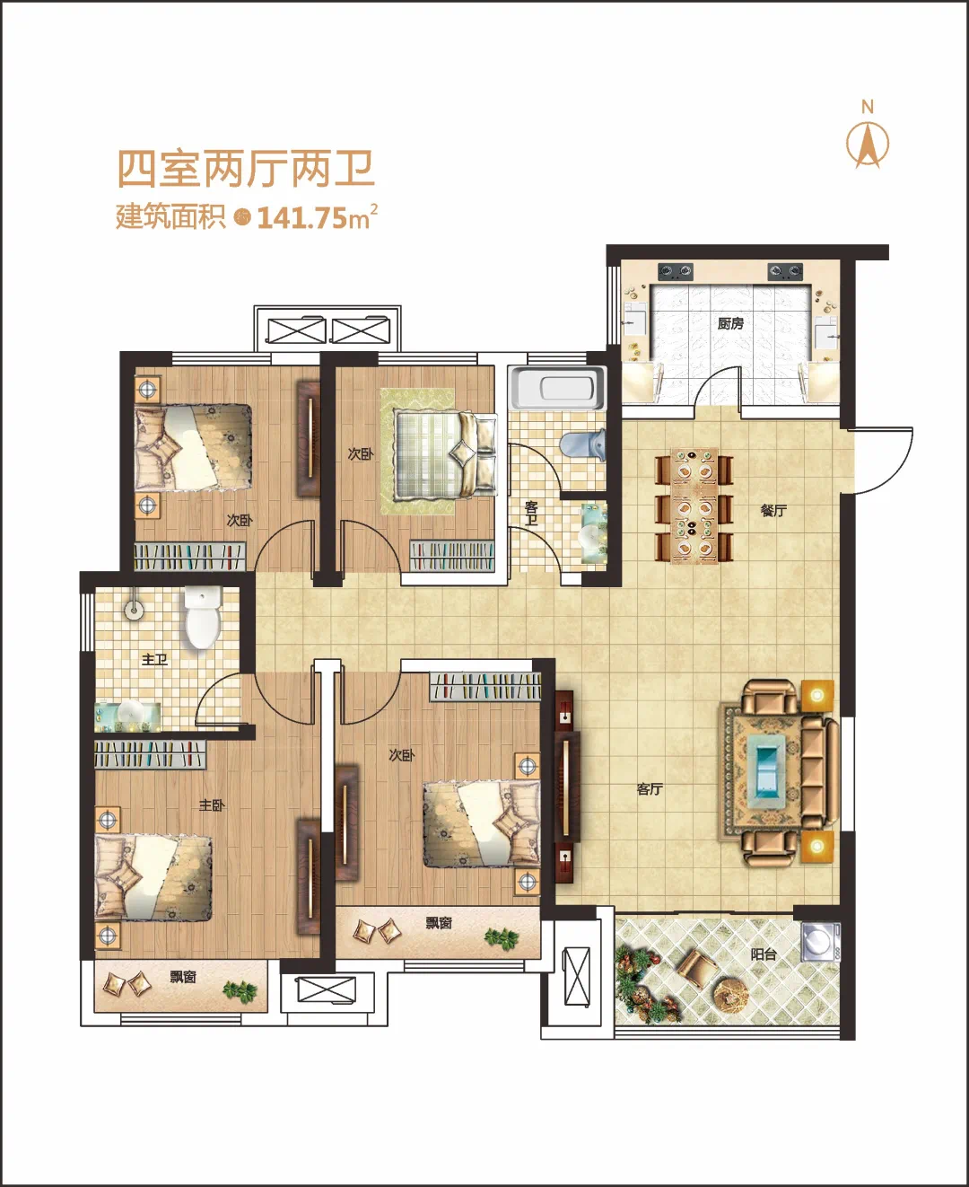 建面约141㎡宽景四居,瞰景横厅,双厅相连,品鉴非凡人生;客厅与卧室采用动静分区的人性化设计,让活动、休息保持科学距离;餐厨一体,动线分明;奢阔四卧,双卧朝南,优享全明户型;L型观景飘窗,将美景尽收眼底,极大的满足品质人居体验。