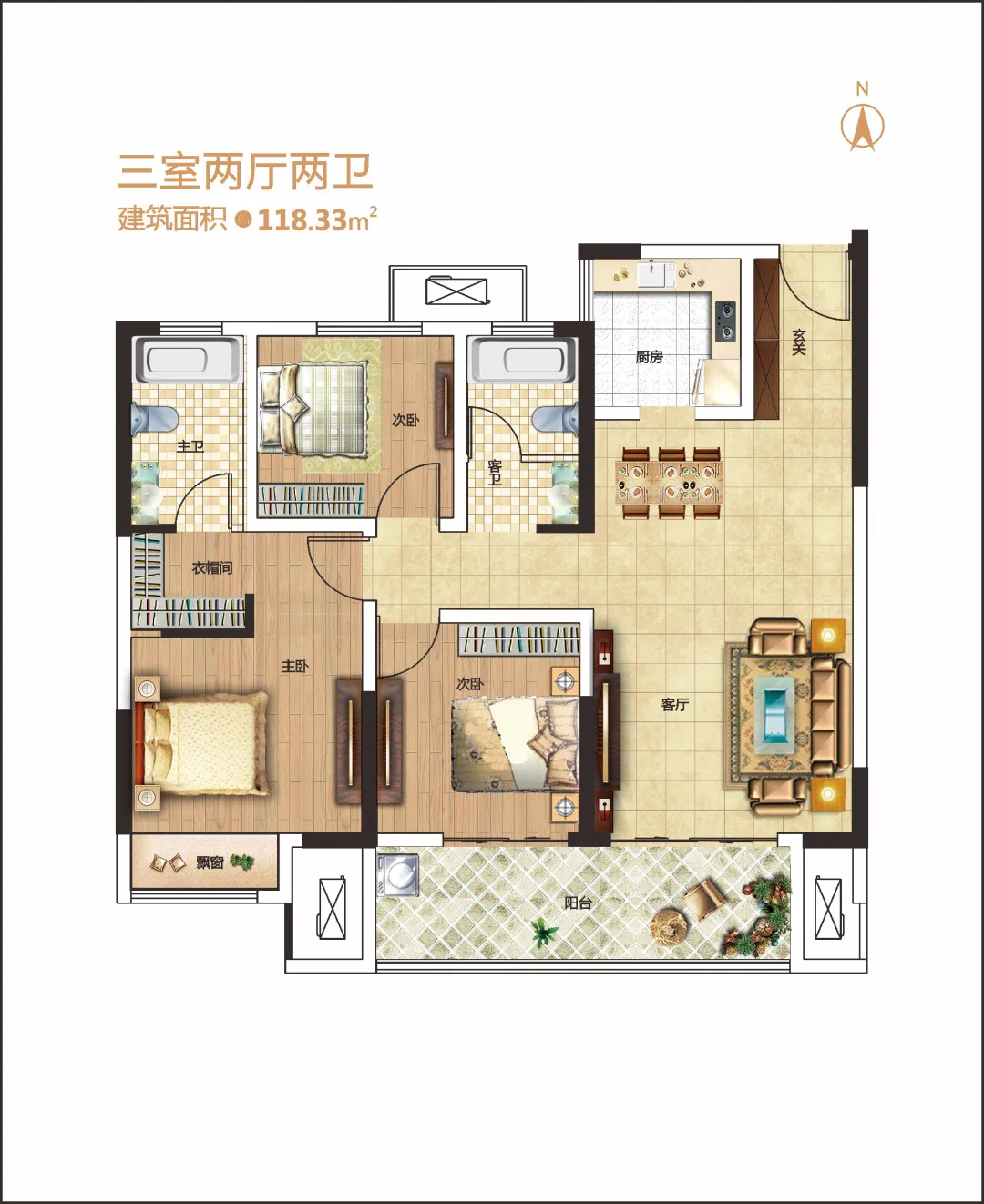 建面约118㎡优质三室,户型方正,南北通透,客厅连通观景阳台,视野开阔;在阳光明媚的午后,和孩子一起进行一次美妙的阳光spa;三开间朝南,清风阳光时刻作伴,第三室多功能用途,书房、儿童房、老人房、健身房随心安排;科学布局,拒绝细微空间的浪费,让每一寸空间都物尽其用。