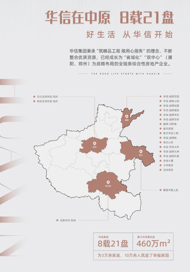 华信集团,8载21盘,开发面积逾460万㎡,省域化布局硕果累累,现已开发建设越绣花园、越绣公园、越绣桂园 、越绣樟园、越绣华府、越绣学府等诸多精品项目。2021年,华信集团再启新篇,匠造华信系列产品,焕新濮阳人居理想!