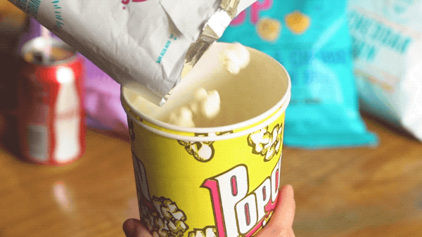 一起坐下来品尝美味的爆米花吧
