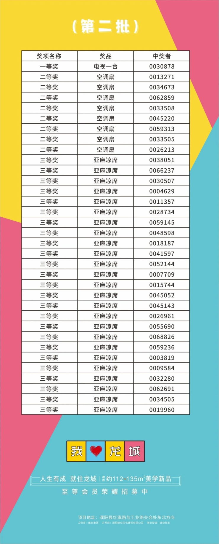 请以上中奖客户于2020年6月1日—3日至建业龙城售楼部凭奖券领取奖品,过期无效。