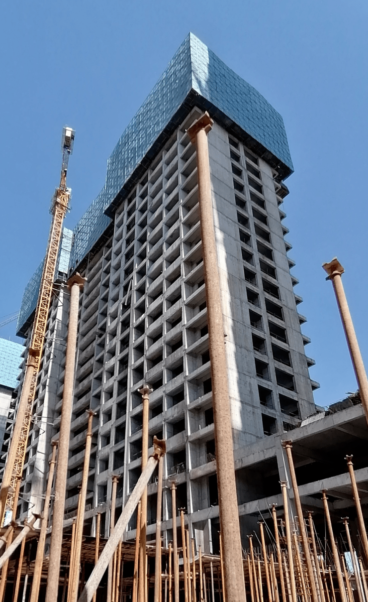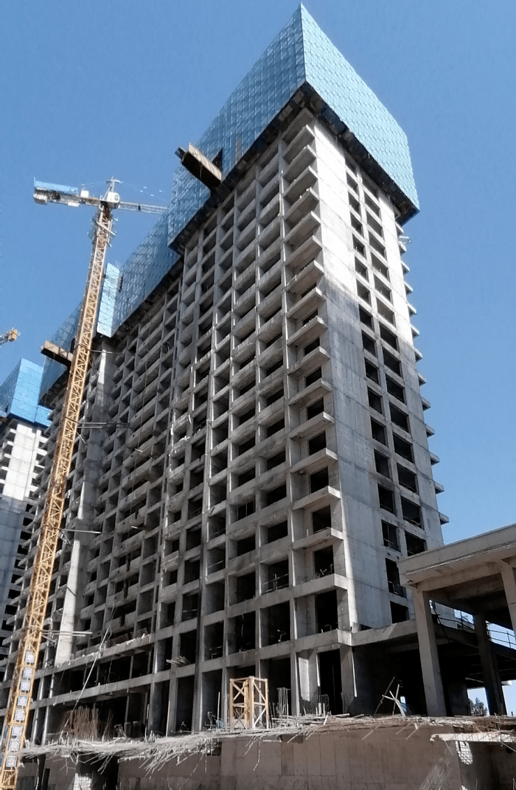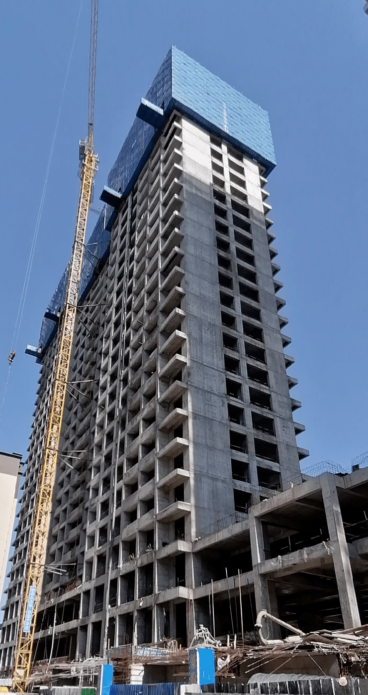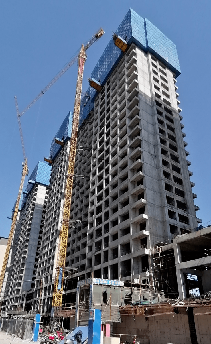 21层主体结构封顶,22层墙柱钢筋正在绑扎