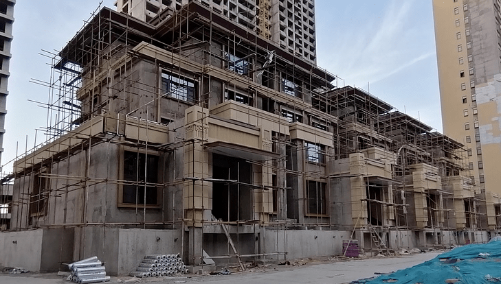 外墙铝板、外墙保温完成100%,地暖敷设完成40%