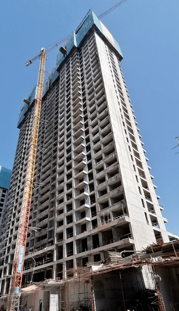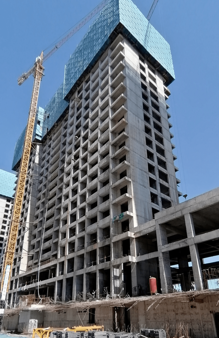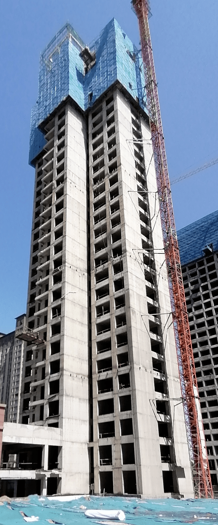 23层主体结构封顶,24层墙柱钢筋正在绑扎