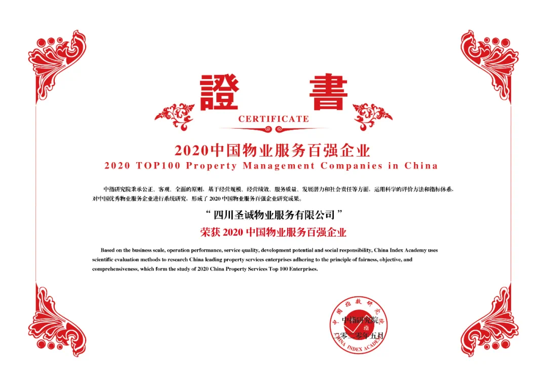 载誉前行丨圣诚物业蝉联物业百强荣誉