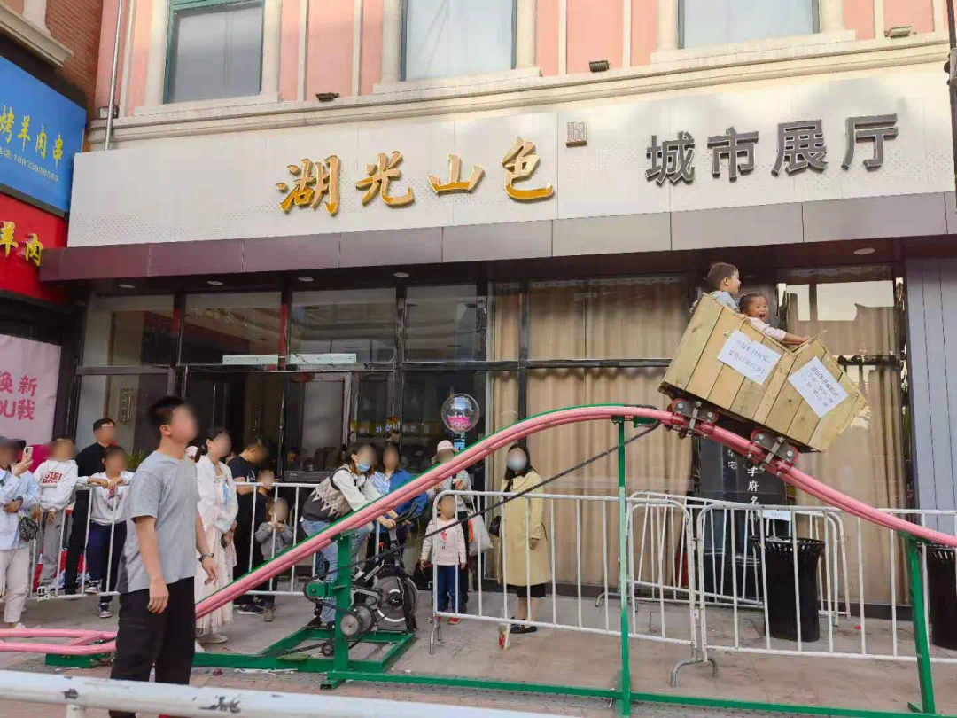 夜晚的极光秀点亮长夜,欢声笑语不绝于耳。而湖光山色五一活动中,最欢乐的莫过于火爆全网的“坑爹”过山车,骑自行车的大人们,拼尽自己全力,把孩子们送上轨道。围观的大家,都不吝啬自己的尖叫,大声的呐喊助威。