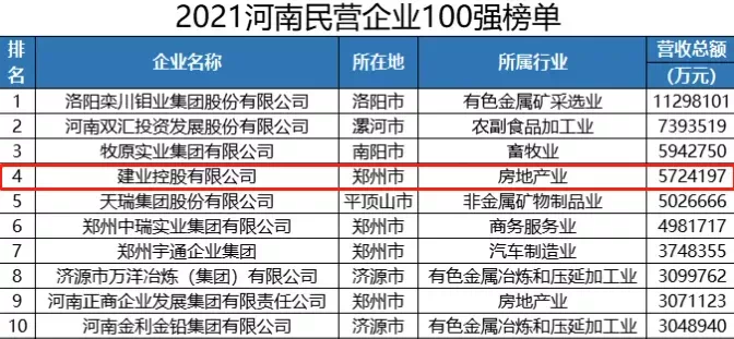 在12月初发布的2021河南民营企业100强系列榜单中,建业集团位列“2021河南民营企业100强”第4位,较去年提升3位;位列“2021河南民营企业现代服务业100强”首位,较去年提升2位;位列“2021河南民营企业社会责任100强”榜单第2位; 12月11日,建业集团连续两年荣登“2021中国旅游集团20强”,河南少有,稳居国家旅游业排名前列方阵!旗下今年新开业的只有河南•戏剧幻城入选“2021文旅融合创新项目”。