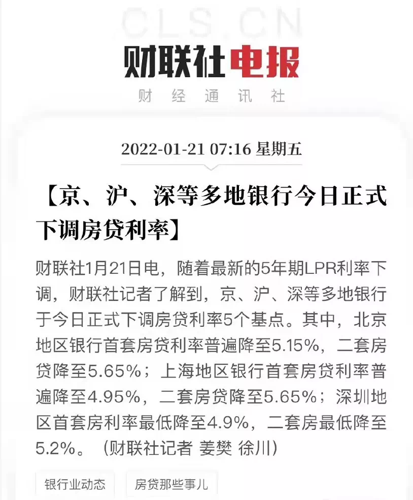 2022开年,楼市利好政策频出:住建部、财政部、中国人民银行等一系列高层定调,降准降息,房贷放松,放贷加速等正向利好政策扎堆涌现,楼市迎来拐点,触底反弹,购房窗口期已至!×利好不断 多城房贷利率下调1月20日,央行公布较新一期LPR,1年期LPR为3.7%,5年期LPR由4.65%下降4.6%。1年期下调10个基点,5年期下调5个基点。众所周知,5年期LPR直接影响房贷,距离上一次的调整已是20个月前。这对于楼市来说,无疑是一个重磅好消息!
