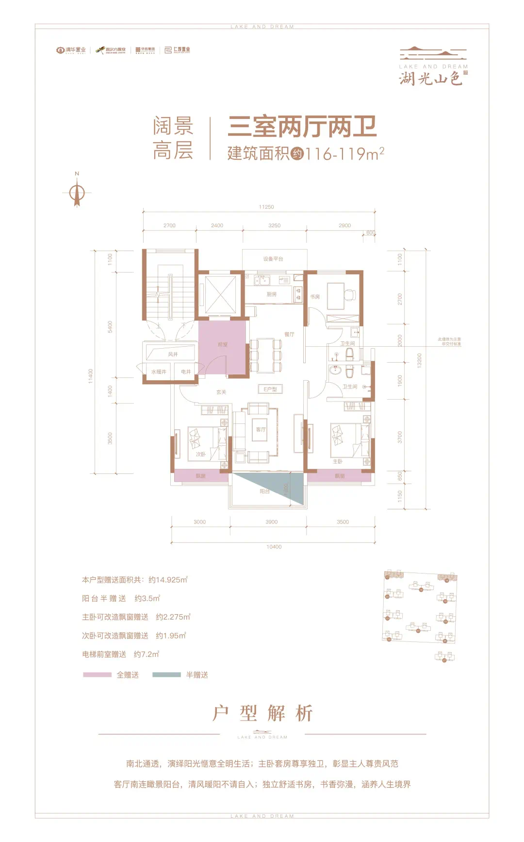 阳台半加赠,飘窗、电梯前室等空间全加赠,洋房加赠设备平台,总加赠空间多至约23㎡(不计入建筑面积)。洋房享一梯两户归家礼遇,高层更享一梯一户尊属空间,悦享美好生活。