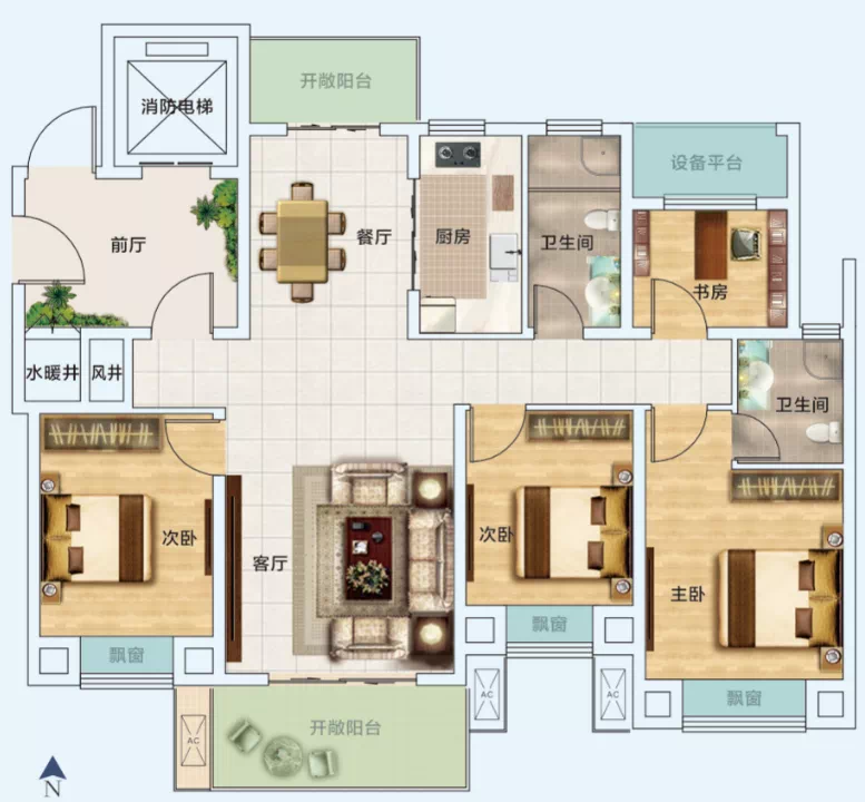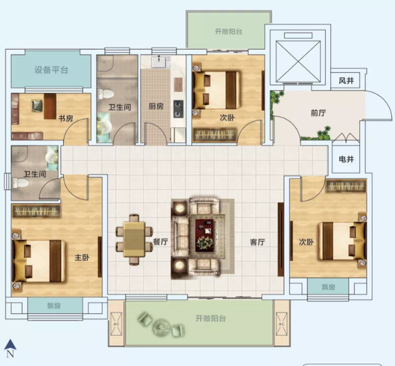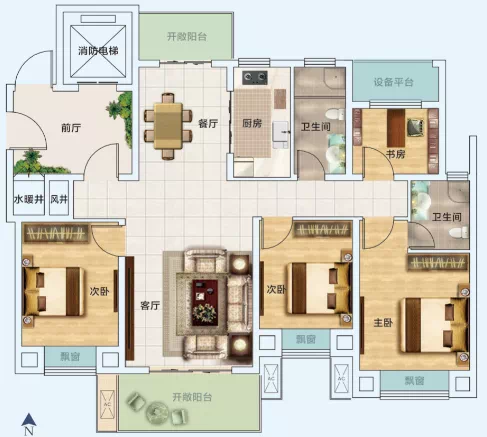 户型设计有效拓延活动空间,能保证充足的通风,整体采光效果也十分优越。南向双阳台,让居住空间层次更丰富,每时每刻都可亲近自然的居住空间。主卫客卫的双卫明窗设计,使空气得到很好流通,卫生而又环保,极大地提高了生活质量和从容感。6.5米超宽阳台,给了生活足够大的活动空间,灵动且从容。