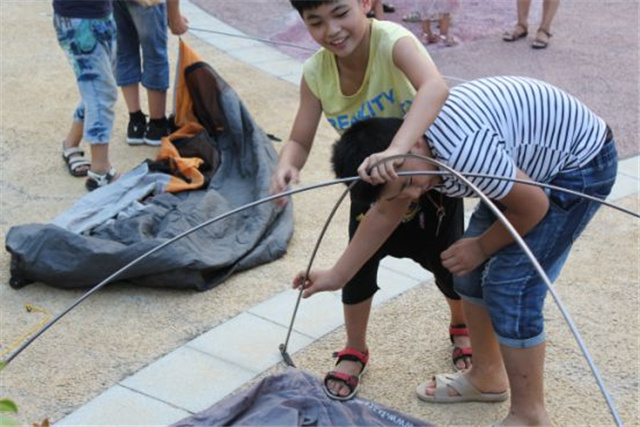 在焦老师的现场讲解下,孩子们掌握了野外露营以及帐篷搭建方法。