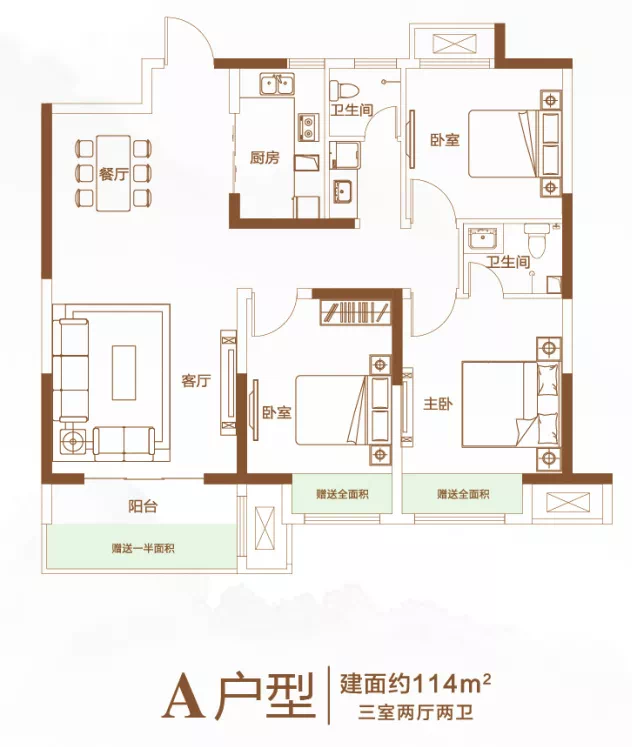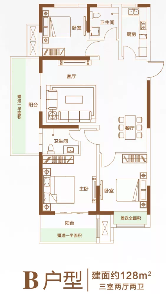 建面约110-138m²全能三房