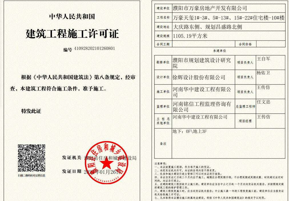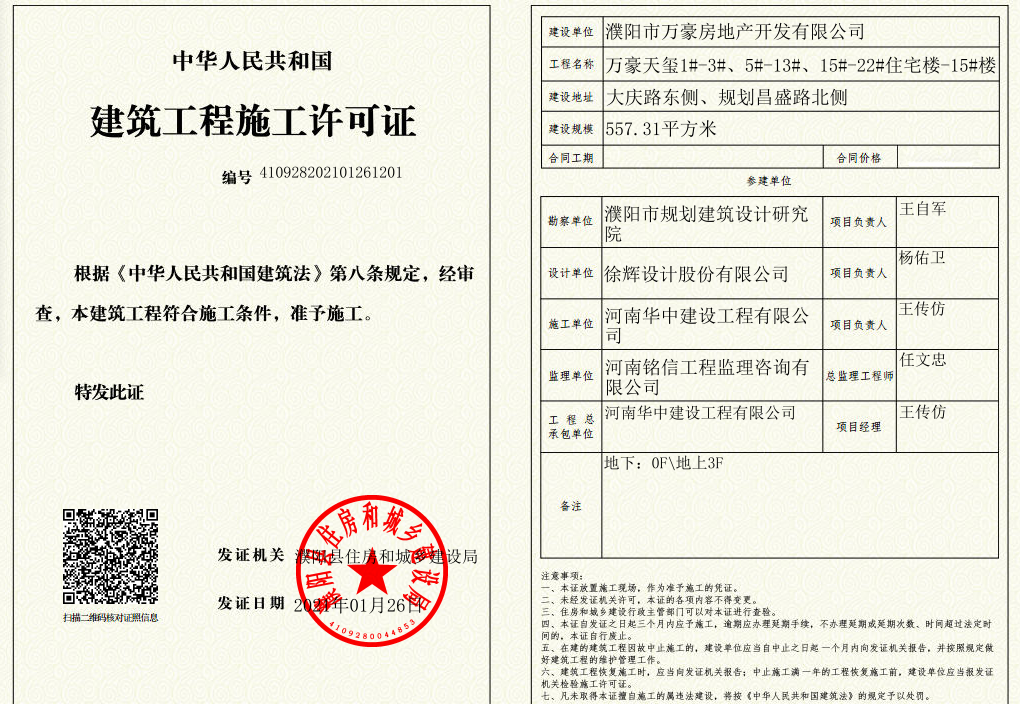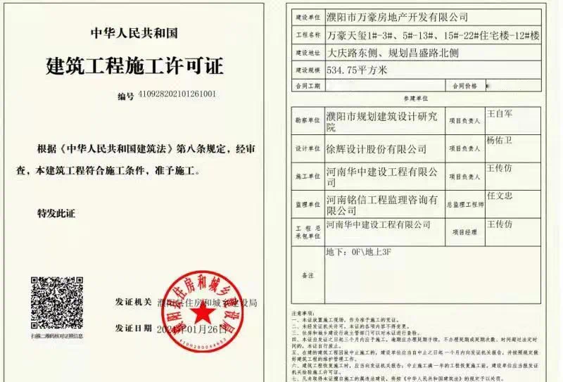 喜获《建筑工程施工许可证》
