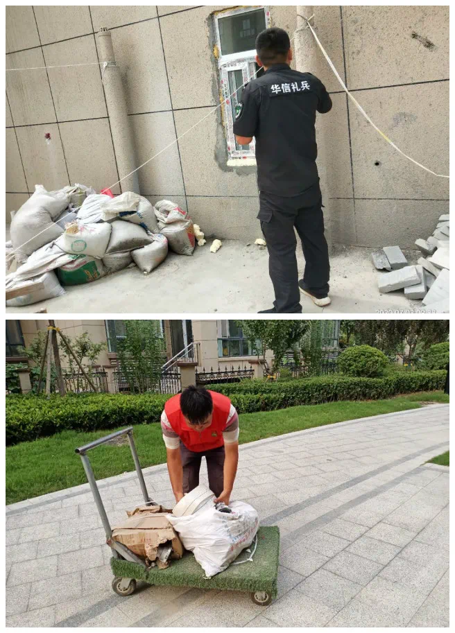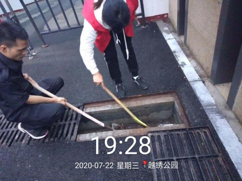 7月礼兵执勤:日常园区巡检,每日2次车棚整理摆放,定期冲洗园区路面,保持路面干净。整理叠装楼道以及地下车库消防水袋。耐心为业主讲解并演示车棚电卡的使用,清理楼栋顶层消防平台杂物,每周为业主搭建晾衣杆方便业主晾晒衣物。清理排污沟杂物垃圾。防汛知识培训及演练。