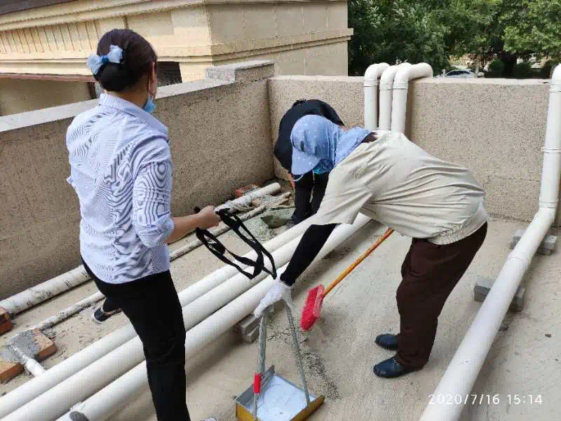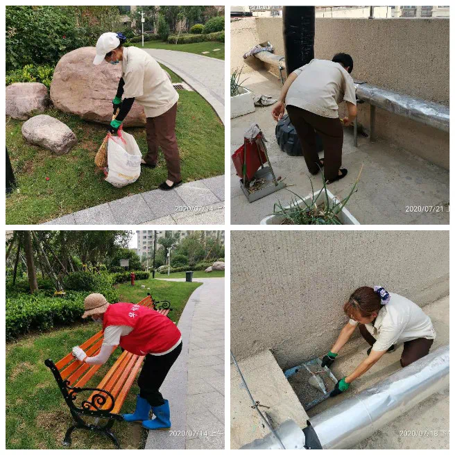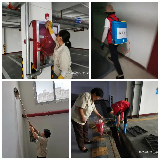 7月份环境维护:保洁人员认真落实各楼栋每日清扫,楼层玻璃窗户定期擦拭,每月定期进行楼道、地下室和园区消杀4次,绿化带垃圾清理,地库路面冲洗各2次,园区水系刷洗14次,清理楼宇顶层消防平台和造型檐垃圾,地库消防器材擦拭,清理园区内外污水沟杂物,每月定期冲洗垃圾桶4次共158个,园区彩光顶清洗2次。
