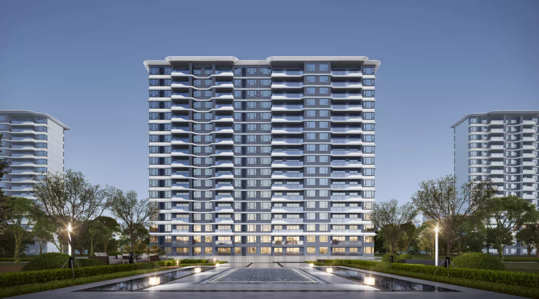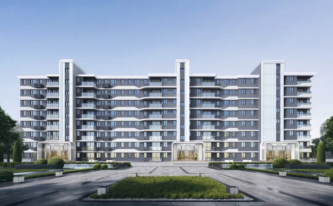 立面色彩上,建业·天筑在考虑到整体外观呈现效果的同时,为避免建筑的沉闷感,与设计团队反复试色,最终选择了以低饱和度为基调,搭配稍有跳跃性的白色调,使建筑弥散出安静的气韵与国际化的审美,削减色彩对情绪的影响,在时光的交融中沉淀美感。