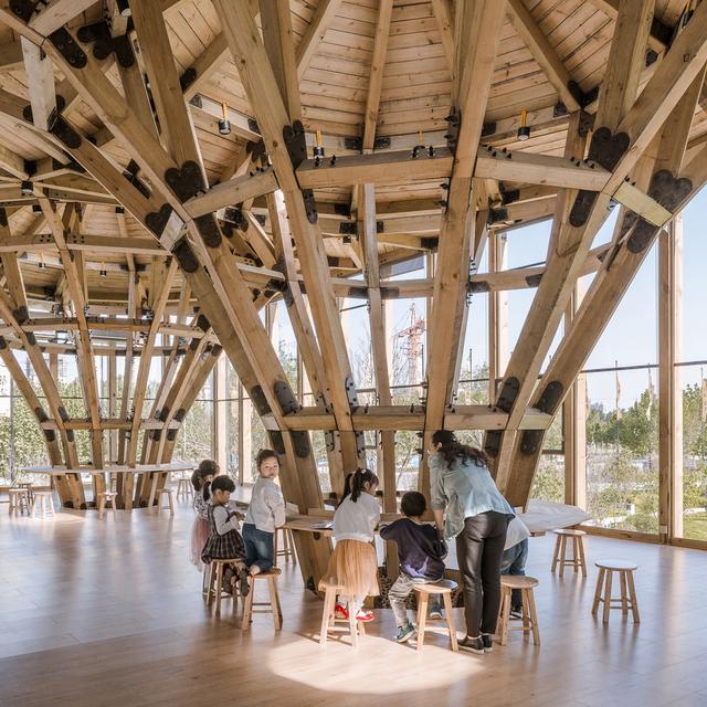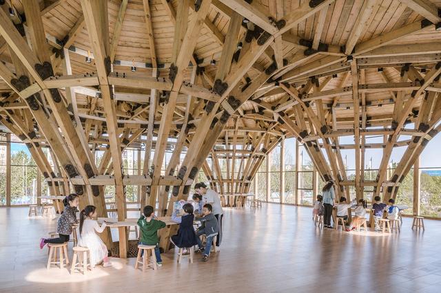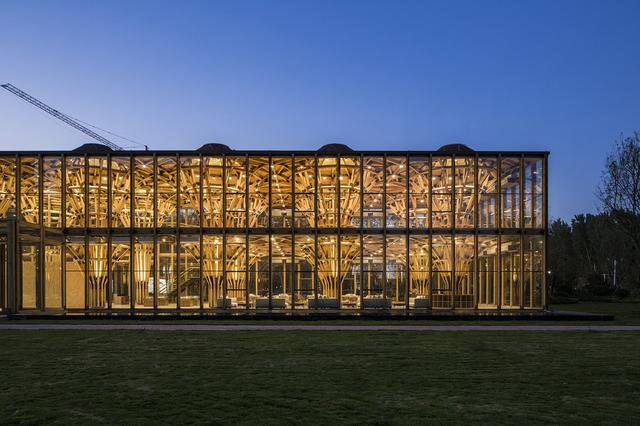 据了解,珑府生活体验中心是由一位从事房地产开发的生态农场经营者委托建造的,该经营者需要空间来瞄准追求绿色生活方式的消费者,由建筑公司LUO Studio设计的木制结构,可以方便地进行改造或拆除,采用可持续的天然材料,体现了与自然的连接,非常贴合客户的企业气质。