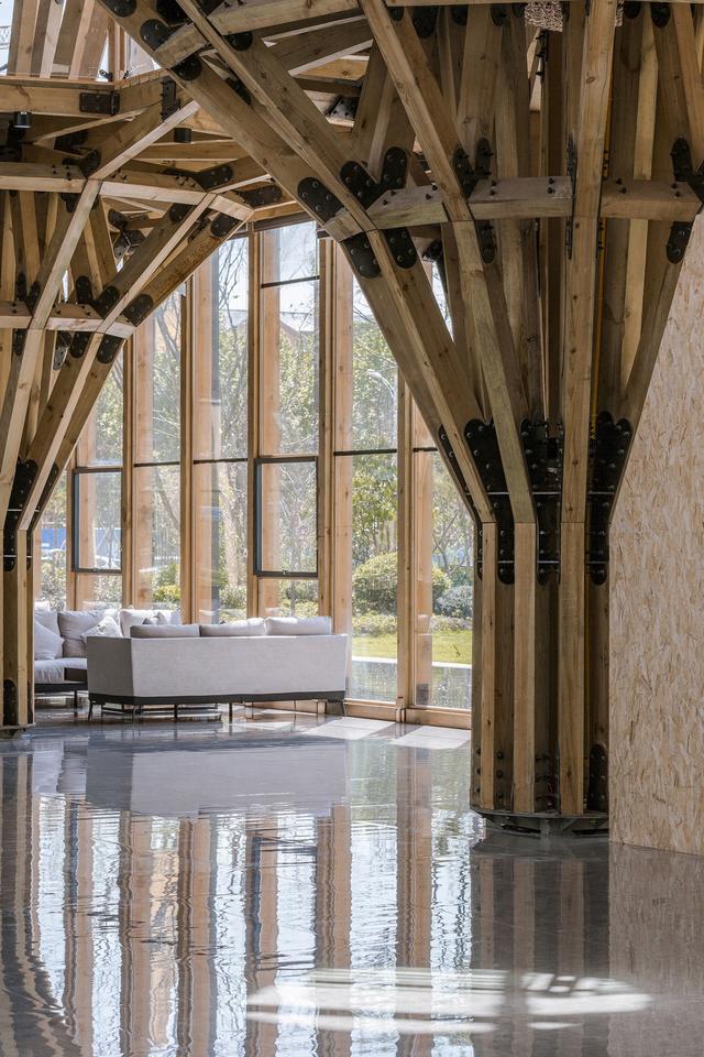 珑府生活体验中心以国内现有的常规标准木材和普遍性加工工艺、建造技术,并不是迁就和设计某个特定功能,而是创造无限的使用可能。