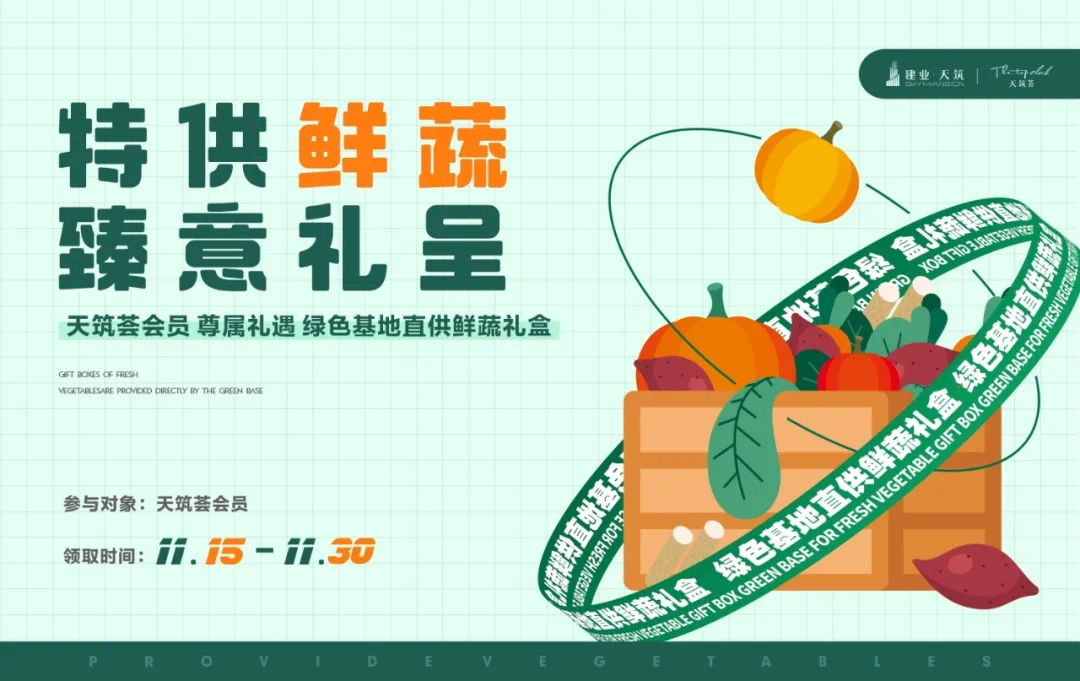 为感谢各位天筑荟会员长久以来的支持与信赖,满足日常生活对新鲜蔬菜需求,建业·天筑愿继续做你的“守胃者”,再次发起会员专属绿色基地特供鲜蔬礼盒权益兑现活动,为您与家人送去冬日特“蔬”的关怀与问候。